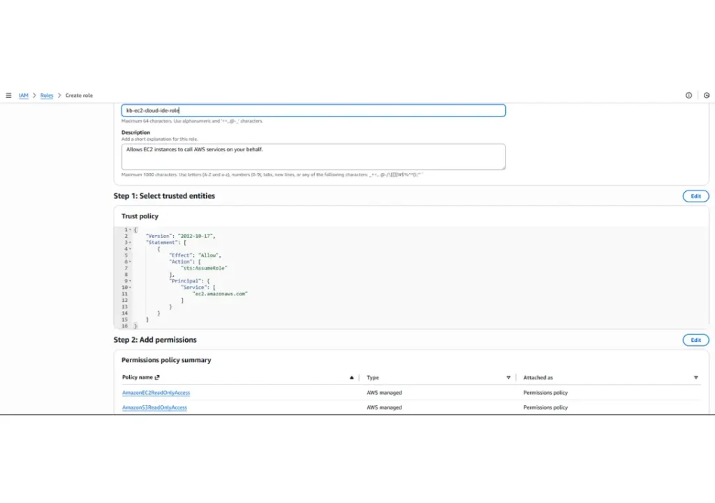 Name the role kb-ec2-cloud-ide-role.